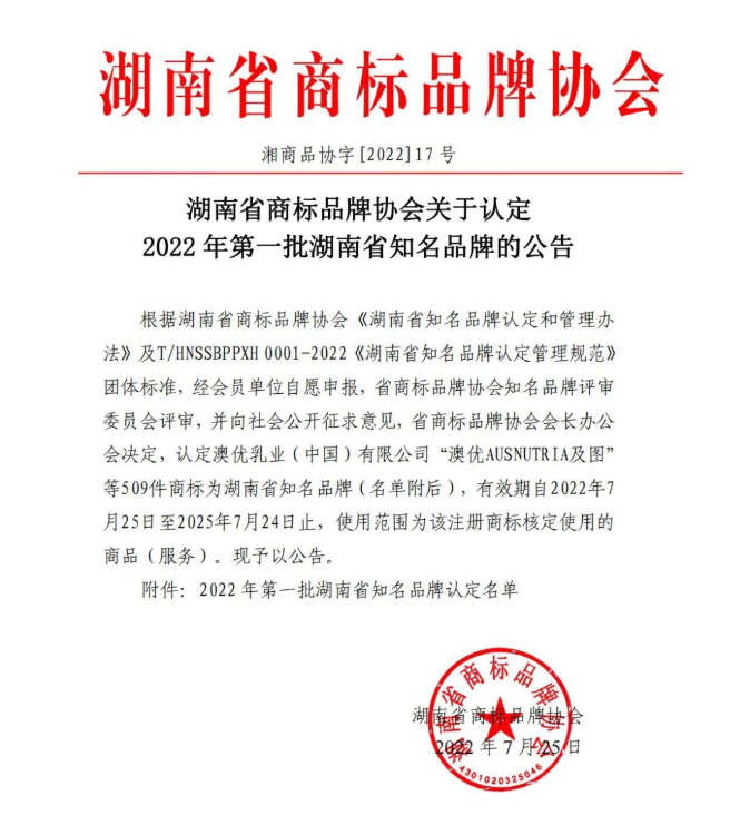 2022年7月25日,经湖南省商标品牌协会认定,韦德国际1946智通成功入选《湖南省知名品牌》。